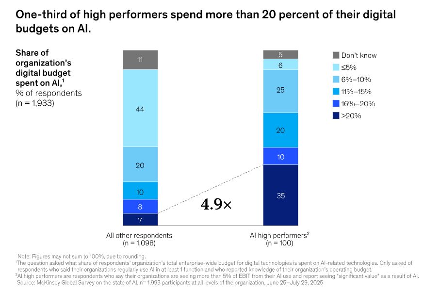 Тара Балакришнан из McKinsey считает, что реальным фактором дифференциации являются не инструменты или таланты, а образ мышления. «Часто организации подходят к ИИ с позиции „затраты — прежде всего“. Хотя многие ставят во главу угла повышение эффективности, сосредоточение внимания только на затратах может ограничить влияние ИИ. Позиционирование ИИ как фактора роста и инноваций также открывает организации пространство для снижения затрат и повышения эффективности», — объясняет она.