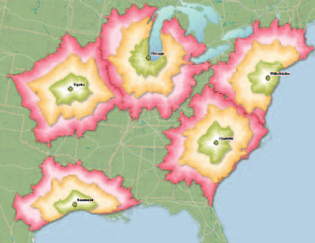 Известно, что стимулом в развитии транспортных ГИС стало широкое распространение спутниковой навигации, однако спектр решаемых ГИС задач гораздо шире, чем помощь в построении маршрутов или же отображение на карте текущего местоположения транспортных средств. Пространственный анализ, моделирование, ведение единой географической базы данных различных объектов со всеми их атрибутами и другие возможности ГИС позволяют добиться существенного снижения затрат, сократить время доставки, оптимально использовать имеющиеся ресурсы и повысить качество обслуживания клиентов. Мы рассмотрим некоторые распространенные способы оптимизации логистической деятельности на основе географического подхода.
