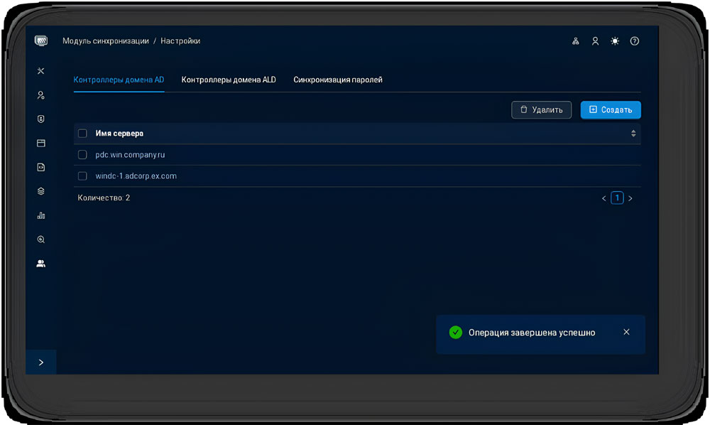 Синхронизация учетных записей пользователей играет ключевую роль при переходе на новую службу каталога. В модуль синхронизации ALD Pro 3.0 были внесены значительные улучшения: увеличена скорость — теперь 10 тысяч пользователей можно перенести всего за два часа. Усовершенствованный механизм работы позволяет обеспечить большую устойчивость к отказам сети и повысить точность сопоставления объектов по уникальным идентификаторам. Кроме того, важные события вынесены в отдельный сервисный журнал, что упрощает диагностику. Повышение производительности и надежности работы помогает сократить время простоев при миграции.