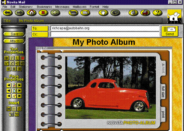 Новое ПО дает возможность редактировать Web-страницы, удаляя и вставляя Java-аплеты, размещать Java-формы в клиентском приложении Novita Mail, а также пересылать по Internet фотографии, отснятые совместимой с Novita цифровой камерой.