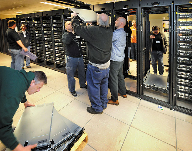 В университете Пердью (шт. Индиана) 5 мая за рекордно короткое время был установлен самый большой в университетском кампусе компьютер (см. фото). В семь утра сотрудники начали его распаковывать, а в час дня более 500 узлов из 812 уже работали и были загружены 1400 задачами пользователей. Отмечается, что работы выполнялись местной ИТ-службой.