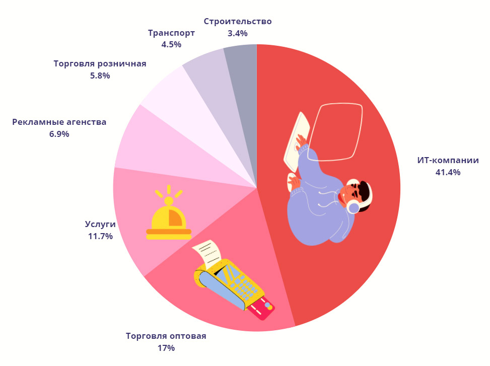 В прошлом году аналитики NBCom Group провели исследование с участием 7500 предприятий. За период с 2019 по 2021 гг. спрос на лизинг ИТ-оборудования в нашей компании увеличился на 120%. Помимо пандемии, основным драйверами роста стала информированность бизнеса. Наибольшая популярность услуги оказалась у ИТ-компаний — порядка 41%. Чаще лизингом пользовался малый и средний бизнес — digital-студии, аутсорс-компании, стартапы и др. Компании заказывают в большей степени ноутбуки и ПК, но также приобретают телевизоры, игровые станции и прочую офисную технику для команды и ресепшена.