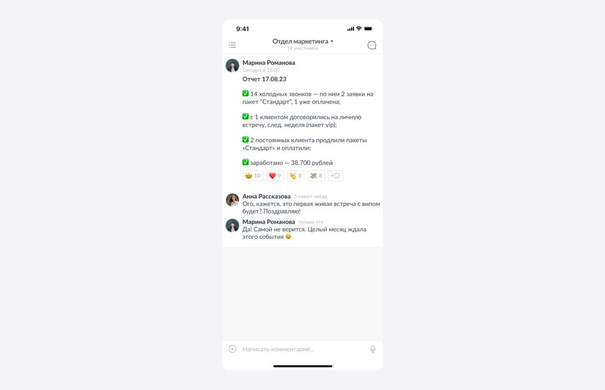 1. Введите ежедневную систему отчетов. Она предполагает, что в конце каждого рабочего дня специалисты сбрасывают в общий чат информацию о своих результатах: сколько звонков сделали, сколько сделок закрыли, какую сумму заработали. Чтобы сотрудники не тратили много времени на заполнение отчетов, разработайте для них простые шаблоны. Не забудьте добавить их в регламенты.
