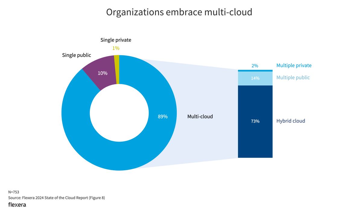 - 89% респондентов применяют мультиоблачную стратегию, по сравнению с 87% в прошлом году;