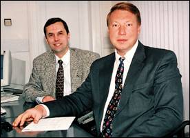 После некоторой паузы продолжить разговор о различиях в методах работы американских и российских системных интеграторов, о делегировании функций и полномочий внешним организациям (аутсорсинге) вызвались руководители фирмы "Новый Атлант" (корпорация "Галактика") Дмитрий Черных и Николай Красилов (см. PC Week/RE, № 46/96, с. 6).