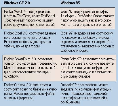 И хотя в число приложений Windows CE 2.0 не входят базы данных, пользователи могут хранить данные в Pocket Excel, сортировать их по строкам и фильтровать информацию с использованием новой команды AutoFilter.