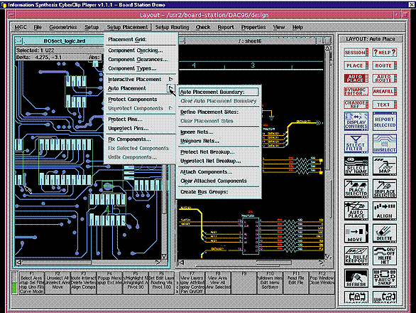 Чтобы познакомиться с этими и другими программами Mentor Graphics, можно воспользоваться мультимедийными демонстрациями, доступными через Web-сервер www.mentorg.com. Программа CyberClip Player Demo Engine фирмы Information Synthesis позволяет просматривать их на ПК под управлением Windows 95 (они просматриваются также под управлением UNIX). Для этого необходимы процессор с тактовой частотой не менее 100 МГц, 24 Мб ОЗУ, цветной монитор (не менее 256 цветов) с разрешением 1024х768 и звуковая карта типа Sound Blaster.