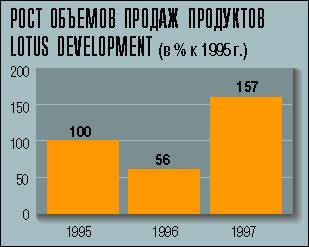 Lotus Development вновь подтвердила свое лидерство на рынке коммуникационных, почтовых систем и систем групповой работы. По подсчетам корпорации Lotus, в 1997 г. в мире было продано более 10 млн. клиентских мест Notes (а вообще установлено более 20 млн. клиентских мест Notes и более 10 млн. - cc:Mail).