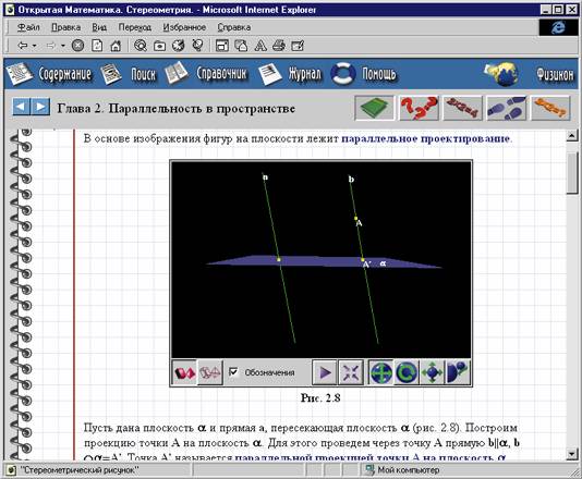 А в тех местах, где учащийся должен решить стереометрическую задачу, ему предлагается весьма серьезное Java-приложение, которое не только показывает ему геометрическое тело, о котором идет речь, но и дает возможность покрутить его в трехмерном пространстве и разобраться, как же оно устроено, что сильно способствует усвоению материала.