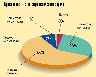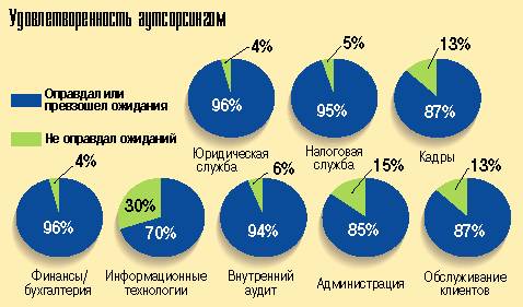 По данным обследования, стремление получить помощь высококвалифицированных специалистов сейчас превалирует над стремлением сократить расходы. Кроме того, почти 88% опрошенных считают аутсорсинг стратегическим инструментом, который обеспечивает конкурентное преимущество. Другие результаты исследования представлены ниже.