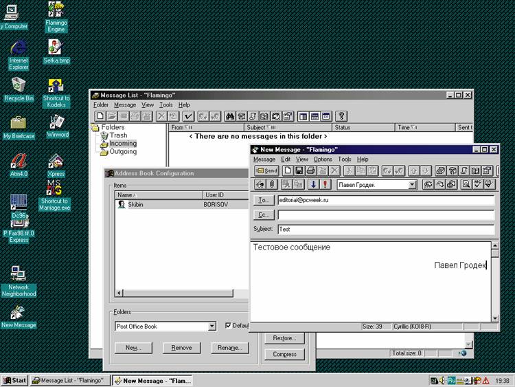 Обе программы - долгожданное спасение от захлестывающего потока электронной почты, их можно порекомендовать практически каждому. The Bat! отлично подойдет для домашней машины или для организаций, где работа с почтой ограничивается обычной Е-mail, причем, похоже, эта программа уже в текущей версии (а обновления выходят с интервалом в неделю-две) способна решить большинство проблем. А Flamingo - серьезный корпоративный продукт, готовый снять с плеч администратора на крупном или среднем предприятии немалый груз забот по настройке и соединению в единое целое разнообразных систем передачи сообщений.