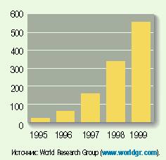 Итак, как говорится в исторических исследованиях, первые упоминания о компьютерной телефонии (КТ) относятся к 1996 г., объем соответствующего рынка в том недалеком году исследовательская компания Frost & Sullivan оценила в 1,8 млн. долл. В 1999 г., по прогнозу IDC, он достигнет 560 млн. долл. и охватит 16 млн. пользователей в мире. Вышеупомянутая компания Frost & Sullivan предсказывает темп прироста отрасли на 149% ежегодно, что приведет к увеличению объема рынка КТ до 1890 млрд. долл. в 2001 г. Корпорация IDC, в свою очередь, сумела рассчитать, что в этом же 2001 г. суммарная длительность международных звонков с территории США по сетям с коммутацией пакетов составит 4 млрд. минут, а в пределах США таких звонков наберется на 8,5 млрд. минут, что составит менее 1% общего объема внутреннего и международного трафика. В 2002 г. оборот средств на рынке Интернет-телефонии, по данным IDC, вырастет до 20,5 млрд. долл. и 11% всех телефонных звонков будет совершаться посредством IP-соединения. Надо сказать, что компания Killen & Associates в своих долгосрочных прогнозах более сдержанна: она полагает, что объем рассматриваемого рынка достигнет к 2003 г. лишь 8 млрд. долл.