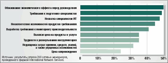 Вопрос расширения штата становится камнем преткновения для многих корпораций (см. диаграмму). Размер сети может увеличиться за год в полтора-два раза. Но компания, удваивая пропускную способность сети, далеко не всегда согласна нанимать новых специалистов.