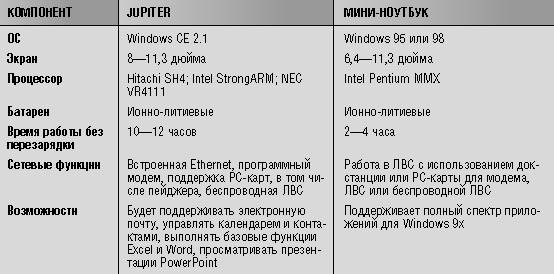 Карманные ПК будут приблизительно того же размера, что и мини-ноутбуки, но на этом сходство заканчивается (см. таблицу).