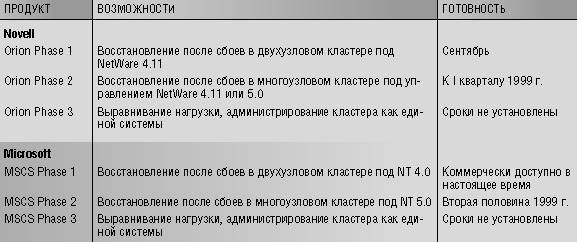 Свои планы меняет не только Novell. Корпорация Microsoft (Редмонд, шт. Вашингтон), приступившая к поставкам ПО двухузловой кластеризации для Windows NT еще в ноябре прошлого года, отказалась от идеи выпуска более совершенного варианта этого решения в будущем году вместе с NT 5.0. По словам менеджера Microsoft по NT Server Марка Хэсса, модернизированная версия Microsoft Cluster Server поступит на бета-тестирование вскоре после выпуска NT 5.0. Впрочем, и в ней, подобно второй очереди проекта Orion усовершенствования не выйдут за рамки простого увеличения числа поддерживаемых узлов и реализации более совершенных механизмов восстановления после сбоя.