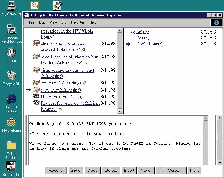 Взяв на себя роль пользователя-агента и войдя в систему Adante с помощью Web-браузера, мы смогли просмотреть все сообщения, ожидающие обработки. В пакете предусмотрена весьма полезная опция: сообщения выдаются на обработку в хронологическом порядке начиная с тех, которые поступили первыми. В результате агенты не могут выбирать почту по своему вкусу и ее обработка становится более упорядоченной.