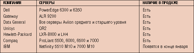 Ряд производителей аппаратуры, и среди них корпорация Dell Computer, фирма Gateway, корпорации Data General, Compaq, IBM, Unisys и компания Hewlett-Packard, собираются представить в январе серверы на основе новых процессоров.