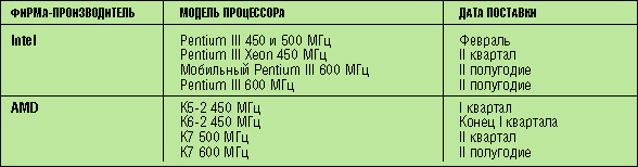 Ожидается, что поставки процессора Pentium III начнутся в конце февраля 1999 г. и в это же время ряд производителей оборудования, в том числе корпорация Compaq (Хьюстон, шт. Техас), начнут выпуск новых ПК, основанных на этом процессоре. Compaq планирует устанавливать его в компьютерах серий Deskpro, Armada и ProSignia.