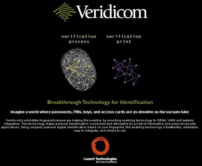 Фирма Veridicom, недавно выделившаяся из фирмы Lucent Technologies и занимающаяся разработкой коммерческих приложений на базе запатентованной Lucent технологии опознавания по отпечаткам пальцев, готовит к выпуску программный пакет OpenTouch. Он обеспечит ввод отпечатков пальцев в компьютер, их предварительную обработку и сравнение с имеющимися образцами.
