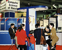 Россия на CeBIT’99 была представлена более чем 60 участниками (по каталогу - 44), большая часть которых разместилась на объединенном стенде, организованном российским Министерством науки (к сожалению, число экспонентов из других государств бывшего социалистического содружества также было весьма скромным: Украина - 42 участника, Белоруссия - 18, Литва - 3, Латвия - 1, Чехия - 18, Венгрия - 17, Болгария - 3, Словакия - 1).