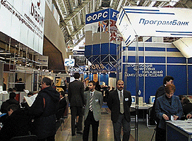 С тех пор прошло почти полгода, и, осмотрев нынешнюю экспозицию, с удовлетворением отмечаешь, что состав основных участников этого рынка - компаний разного масштаба - не изменился. На внушительных стендах компаний R-Style Software Lab., “Диасофт”, ФОРС, “Золотая Корона”, CSBI EE, “Инверсия”, “Програмбанк”, “Банковские информационные системы”, “Кворум” посетителям был представлен солидный набор услуг и продуктов, число которых за прошедший год значительно выросло.
