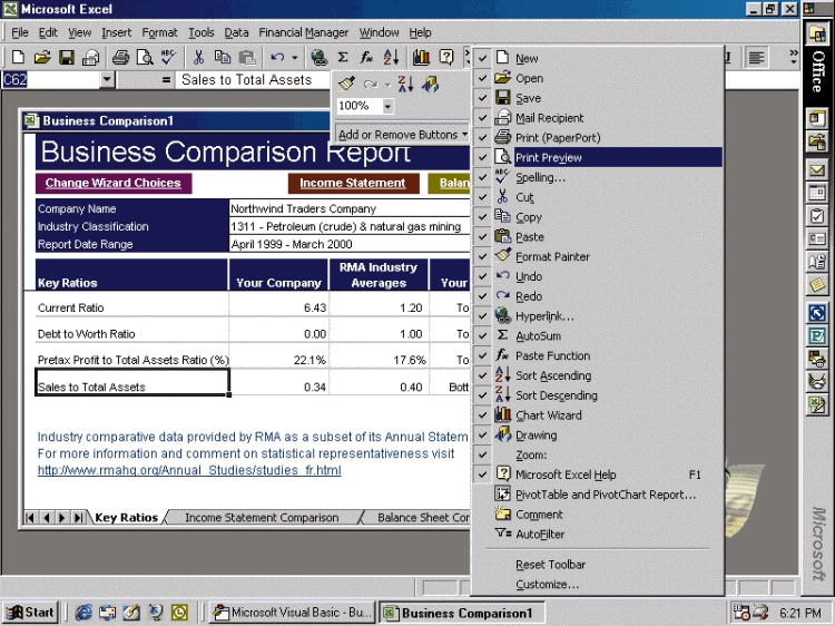 Пользователи Office 2000 могут самостоятельно выбирать команды, отображаемые на панели инструментов