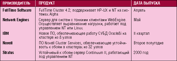 Такие производители, как Novell, IBM, Network Engines и Stratus Computer, разрабатывают новое ПО и оборудование для обеспечения своих клиентов более надежным доступом к важным данным.
