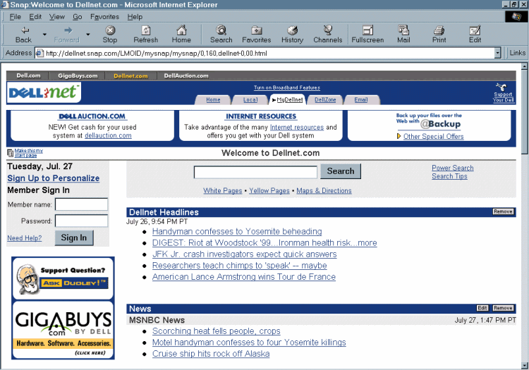 Портал Dellnet.com был создан в сотрудничестве с фирмой Snap, совместным предприятием компаний CNet и NBC. Эти две компании будут обслуживать раздел новостей и ПО этого сайта.