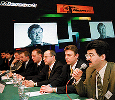 На утренней пресс-конференции кроме выступления менеджера по маркетингу Microsoft АО Гамида Костоева большой интерес вызвали сообщения представителей стратегических партнеров Microsoft - Compaq, Cisco Systems, Hewlett-Packard, Dell, IBM и др.