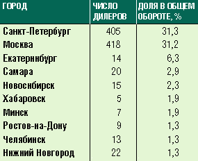 Сергей Пацкевич: Практически с каждым дилером мы работаем персонально. Цены, по которым они покупают у нас продукцию, зависят от множества факторов: “степени крупности компании”, кредитной истории, региона, в котором она работает, и т. д. Из 1250 компаний, закупавших у нас продукцию в 2000 г., около 800 имеют кредитные линии. Естественно, что для каждой фирмы отслеживается динамика закупок и динамика использования кредитной линии. При этом компании имеют возможность, начав с небольшой кредитной линии и повышая обороты из месяца в месяц (а не из года в год!), эту кредитную линию увеличивать.