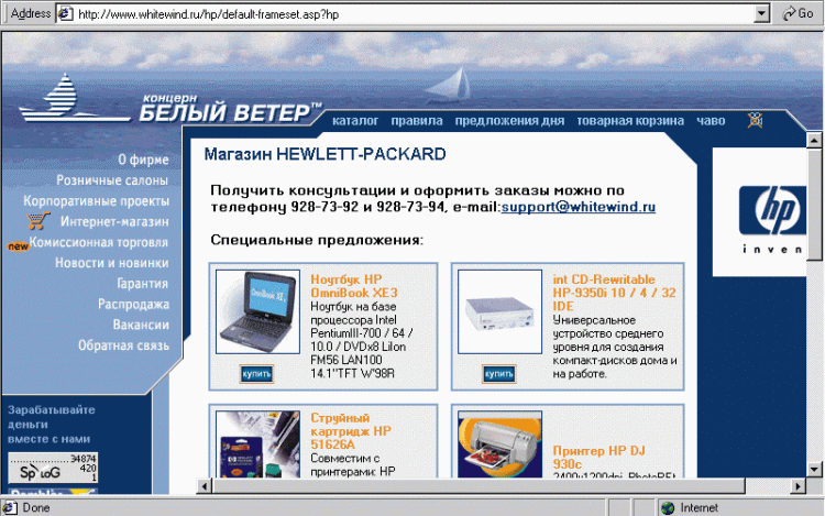 7 февраля российское отделение компании Hewlett-Packard (www.hp.ru) представило стратегическую программу по э-бизнесу, предусматривающую новые способы электронного взаимодействия бизнеса и клиентов, которые стали возможны благодаря Интернету. Первый этап программы заключается в том, что HP способствует созданию в рамках российских Интернет-магазинов специальных отделов, содержащих полную линейку ее продукции. В настоящее время такие отделы, получившие название “магазин-в-магазине”, организованы в Depo.ru, Image.ru, Intershop.ru, Computerplaza.ru (эта компания даже зарегистрировала отдельный домен hpplaza.ru) и Whitewind.ru. Интересно, что Hewlett-Packard не требует какого-то особого дизайна своих “магазинов-в-магазине”. Единственное пожелание - чтобы в отдел, где продаются ее фирменные продукты, можно было легко попасть с первой страницы. Кроме того, в рамках “магазинов HP” не допускаются ссылки на продукцию конкурентов. В список требований, которым должны удовлетворять специализированные отделы, входит также работа “горячей” линии в течение 18 часов в день (причем эта линия предназначена исключительно для ответов на вопросы покупателей, а не для технической поддержки пользователей), реализация всех принятых законом способов оплаты и доставка купленных товаров потребителю в течение трех рабочих дней со дня размещения заказа.