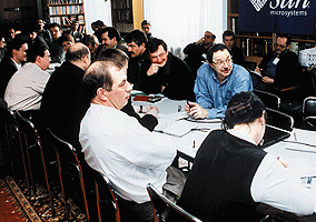 5-7 апреля состоялся IT-Форум’2001 (www.it-forum.ru), организованный консалтинговым холдингом “Алгоритм Груп” (www.alqorithm.ru) и деловым изданием “ИТ-Бизнес” (CRN/RE, www.crn.ru) и посвященный актуальным проблемам и перспективам развития российского рынка информационных технологий. Как и в минувшем году (см. PC Week/RE, N 11/ 2000, с. 1), он прошел в подмосковном пансионате “Поляны”. Организаторы утверждают, что в форуме, “платиновыми” спонсорами которого выступили Compaq и APC, а обычными - Sun Microsystems, Intel, Lexmark, Verysell, Elko Moscow и ряд других фирм, приняли участие около 500 руководителей и топ-менеджеров примерно 200 ИТ-компаний, а также журналисты компьютерных и деловых изданий. Среди собравшихся можно было увидеть представителей 22 городов.