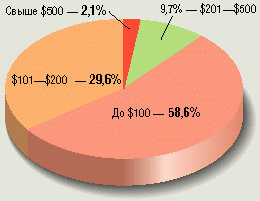 Объем продаж офисных сканеров, поставленных по официальным каналам вендоров, превысил в 2001 г. 276 тыс. шт., увеличившись по сравнению с предыдущим годом на 54%. Главной особенностью был опережающий рост денежной составляющей рынка - почти на 58%. Это было вызвано изменениями в структуре продаж сканеров по типам и ценовым категориям, отразившими смещение предпочтений пользователей в сторону более качественных продуктов. В частности, уменьшение (почти на 9%) доли планшетных устройств с ценой менее $100 сопровождалось увеличением этого показателя для всех остальных групп сканеров. Наиболее динамично увеличивались поставки фильмовых устройств, рыночная доля которых в денежном выражении составила 5,6%.