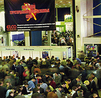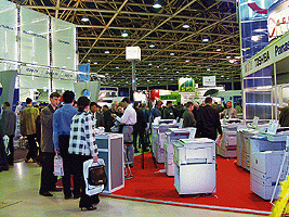 В этом году Комтек занял меньше площадей и проходил в двух павильонах Экспоцентра - втором и Форуме. Про Форум мы промолчим, поскольку жизнеутверждающий беспредел компьютерных игр и разнообразного мультимедиа, определявший атмосферу в этом павильоне, предмет обозрения скорее глянцевых молодежных изданий, а не нашего еженедельника. (В числе немногочисленных исключений - большой желтый стенд “1С” в центре зала, на котором компания дала возможность выставиться своим франчайзинговым партнерам, и тайваньские поставщики комплектующих.)