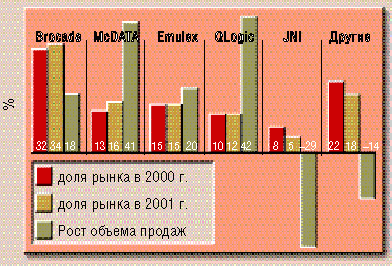 По поводу спада производства Fibre Channel главный аналитик исследовательской группы по вопросам хранения данных компании Gartner Dataquest Джеймс Опфер заявил, что “происходил переход от 1 Гбит/с продуктов Fibre Channel к 2 Гбит/с продуктам, причем этот переход не был закончен в 2001 г.”.