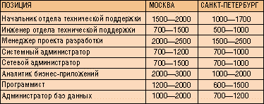 Значительное число нетрудоустроенных ИТ-специалистов привело к снижению среднего уровня заработной платы в 2000 г. (не более чем на 30%). Что же касается самых востребованных специалистов, то здесь уровень заработной платы не только не снизился, но и вырос (см. таблицу).