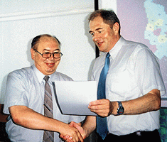 Хилмар Лоренц (справа) передает сертификат