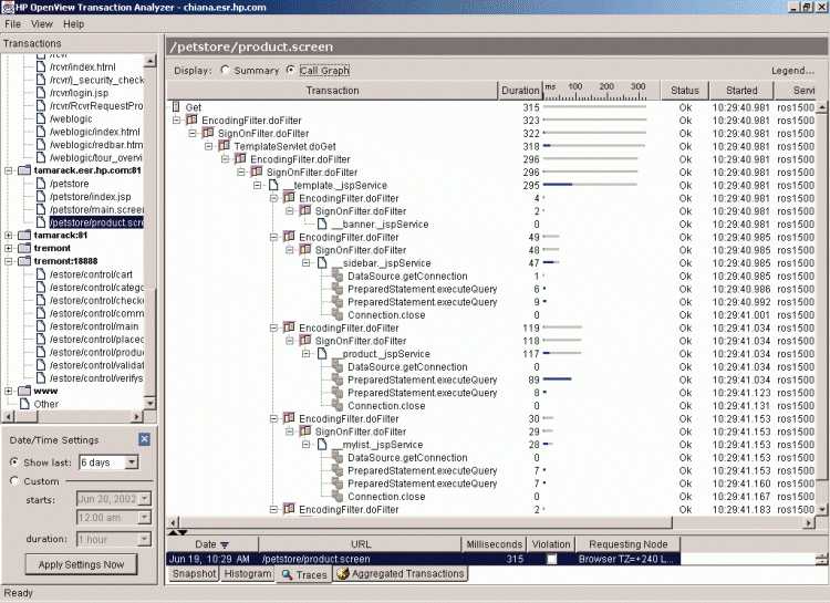 “Вы сможете опускаться до уровня JavaBeans или объектов COM (Component Object Model - компонентная объектная модель), просматривать там все задачи и выяснять, какой вклад вносит каждая из них в длительность отклика, - поясняет Билл Эметт, менеджер по маркетингу решений НР (Форт-Коллинс, шт. Колорадо). - Это позволит четко определить долю сетевой задержки в общем времени реакции”.