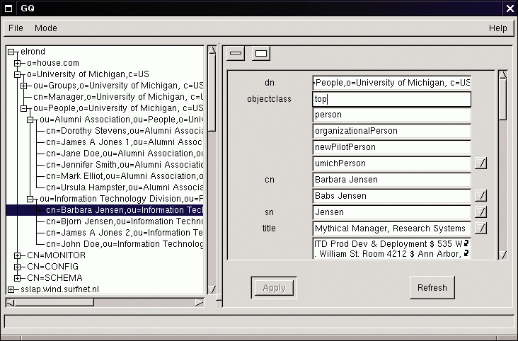 Популярностью пользуется также более низкоуровневый инструментарий под названием GQ, который в дополнение ко всем возможностям редактирования содержимого каталогов предлагает и функции модификации схем.