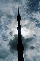 35 лет назад, 4 ноября 1967 г. в Москве зажглись цветные телеэкраны - начал вещание Останкинский телецентр с передатчиками и антеннами, расположенными на самой высокой в мире телебашне высотой 533,3 м. До этого дня с 1948 г. передачи шли из студий на Шаболовке через антенны, поднятые на Шуховскую башню. Со временем потребовалось увеличить число программ, улучшить качество телевизионного сигнала и расширить зону уверенного приема телевизионных и радиовещательных программ с 50-60 до 120 км. Для решения этих и других вопросов в середине 50-х годов и было принято решение о строительстве нового телецентра с полукилометровой башней-антенной.