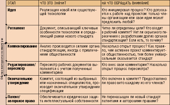 Чтобы своевременно определить ценность того или иного стандарта, очень важно хорошо понять, как именно работают органы стандартизации. Здесь мы расскажем о четырех таких организациях - IEEE, IETF, W3C и OASIS (Organization for the Advancement of Structured Information Standards - организация по развитию стандартов структурированной информации). Этот список охватывает практически весь спектр - от тех, что принимают в свой состав всех желающих, до эксклюзивных групп производителей. В нем представлены как давно знакомые в ИТ имена, так и относительно новые организации.