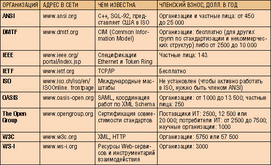 Однако участие в работе большинства групп по стандартизации может быть довольно обременительным. Их членам приходится по нескольку часов в неделю тратить на просмотр электронной почты и подготовку ответов, не говоря уже о необходимости присутствовать на шести совещаниях в год. К тому же такие группы чаще всего находятся на самообеспечении, а это предполагает членские взносы, размер которых колеблется в самых широких пределах. За участие, скажем, в IETF (Internet Engineering Task Force - Целевая группа инженерной поддержки Интернета) платить не надо, но членство в других подобных органах обходится в 50 тыс. долл. в год, а то и больше.