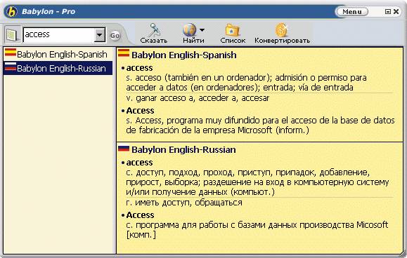 Оболочка Babylon-Pro 4.0 позволяет использовать русскоязычное меню