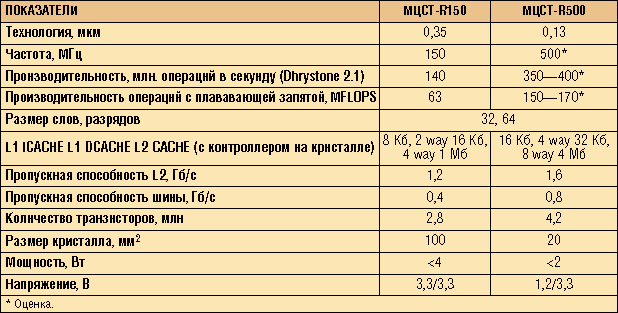 Табл. 1. Основные характеристики микропроцессоров МЦСТ-R150 и МЦСТ-R500