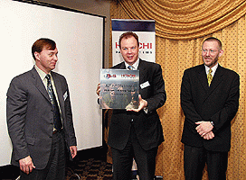Сергей Карпов (в центре) вручает диплом платинового партнера
