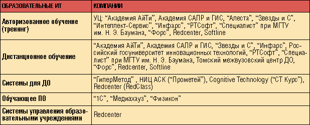 Собственно говоря, весь спектр продемонстрированных технологий обучения можно разбить на несколько групп (см. таблицу), участники которых достаточно хорошо известны на российском рынке.