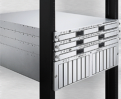 При более пристальном изучении становится ясно, что "корзины" жестких дисков (называемых Apple Drive Module) тоже изменились, и это вполне понятно - ведь здесь используются диски Serial ATA; в результате удалось достичь очень высокой плотности хранения данных (750 Гб на 1U) и большей скорости обмена данными.