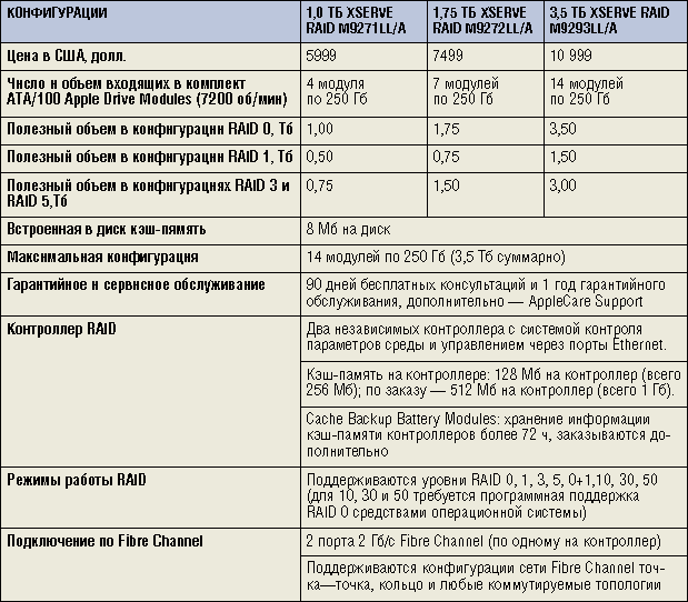Xserver RAID поставляется в трех конфигурациях, более подробные данные о них сведены в табл. 2.