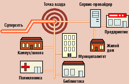Рис. 2. К точке входа в Суперсеть подключаются муниципальные и провинциальные