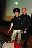 Основной движущей силой шоу стала великолепная пара специалистов по креативным рынкам из Apple Europe Грэма Купера и Кевина Миллера. Показанное ими поистине артистическое представление как бы между делом доносило до зрителей массу довольно сложных понятий, технологий и подходов, отличающих современную операционную систему Apple Mac OS X 10.3 и предназначенные для креативщиков продукты сторонних компаний. И, поверьте, дело здесь было не только в столь необычном для презентатора наряде Грэма и его остроумных рассказах о том, что и в дикой Шотландии, оказывается, есть не только электричество, но и компьютеры и Интернет! Это двухчасовое выступление может послужить очень неплохим руководством даже для профессиональных презентаторов.